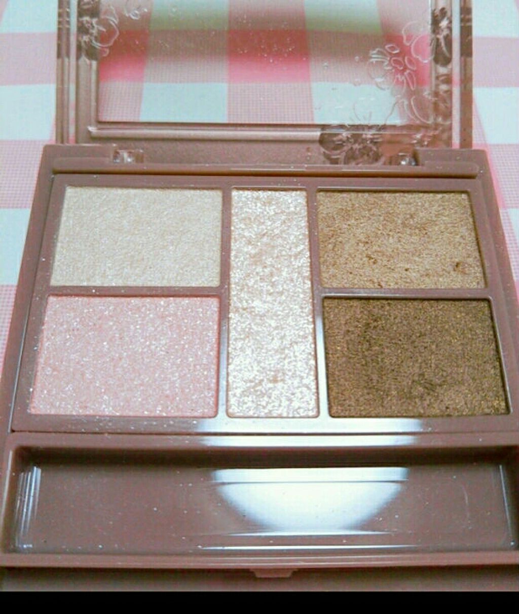 - 1枚のパレットで2つのスタイルが完成! 5色の欲ばりアイシャドウ♥ メインカラーを選んで2つのスタイルが楽しめる! A→B→D でスタイル1 A→C→D でスタイル2 繊細な粉質が、しっとりとまぶたに密着して色落ちを防ぎます。 透明感のあるキラうるトッピングジュエル(繊細ラメ)は、気分によってトッピング!