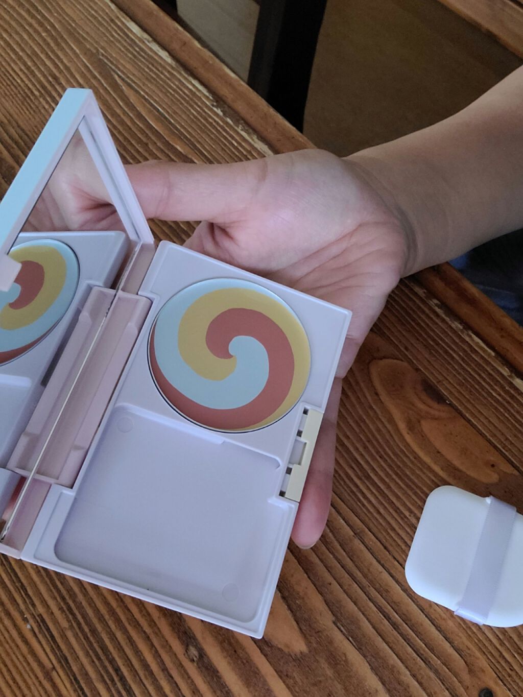 カラフルでかわいい♡ クッションファンデーション。 使う人の肌色になじませるカラートリック設計を活用したブランドだそう。 4色が混ざり合いナチュラルにキレイなんです。 見た目も可愛すぎてトータルでとてもお気に入りのファンデーションになりました。