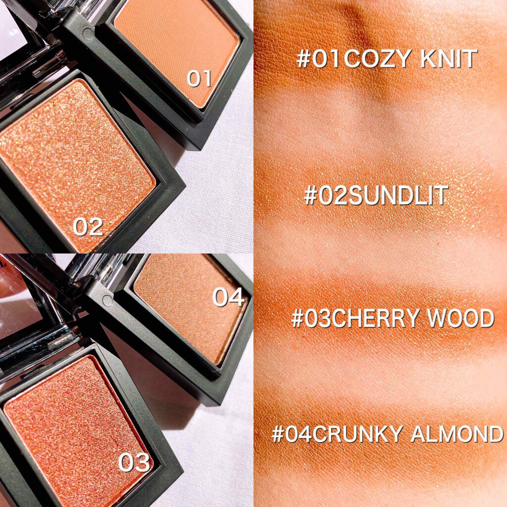 スウォッチ❣️#韓国コスメ☑︎CELEFITアイズフィットデイリーシャドウ🧶01コージーニット🐪02サンドリット🍒03チェリーウッド🤎04クランキーアーモンドこのシングルアイシャドウもとっってもよかった!!です!✨密着感か...