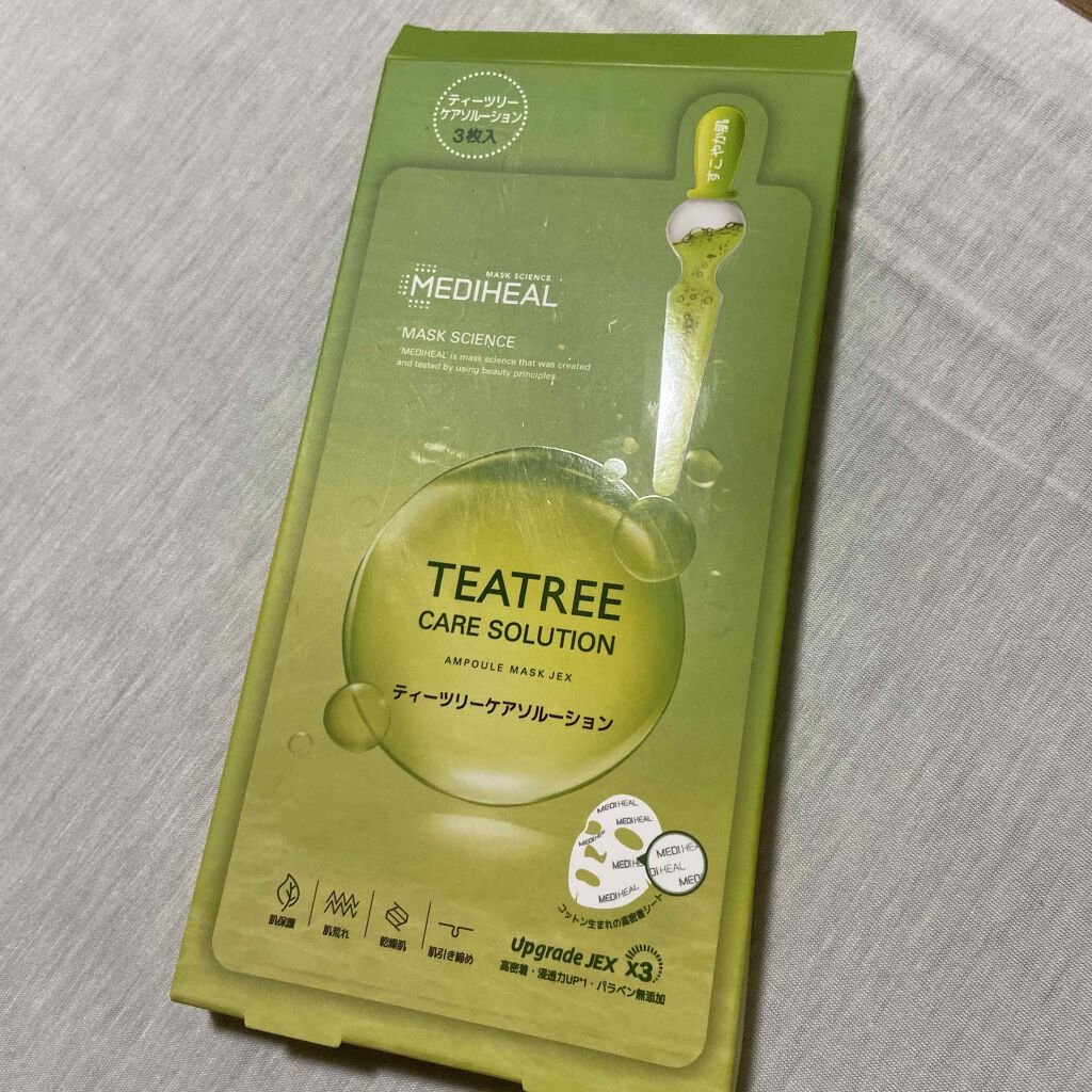 メディヒールの言わずと知れた名品。鎮静効果のあるティーツリーのフェイスマスク! 肌荒れしているときや、日焼けした後におすすめです。 使用感はさっぱりで、これだけでは保湿力が物足りないためクリームなどで蓋をすると良いと思います!