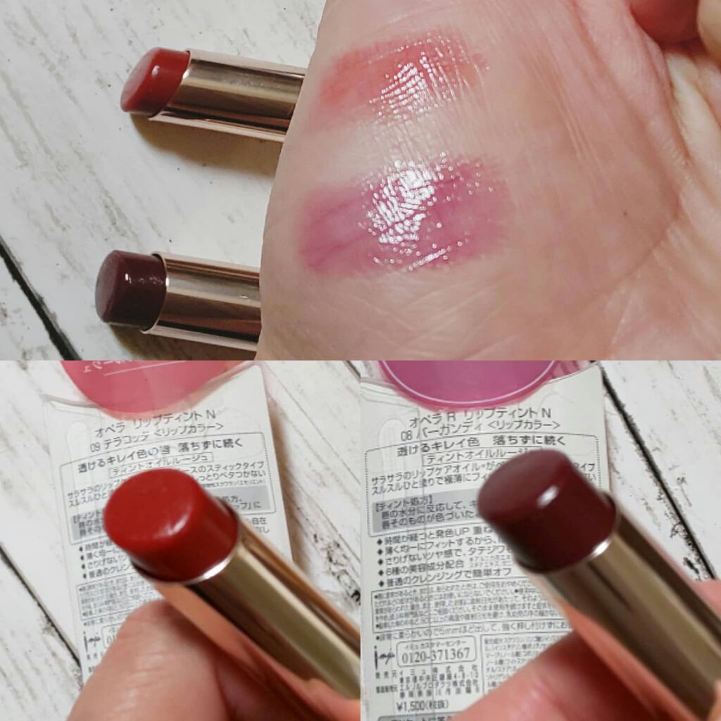 シアーな発色で落ちない❣️オペラリップティントN💄💋こちらは、レビュー企画に当選し、オペラ様から全色いただきました💓嬉しすぎです💖ありがとうございます🙇♀️このリップはシアーな発色でも重ねていくほど濃くもなり、濃淡が付けやすくテ...