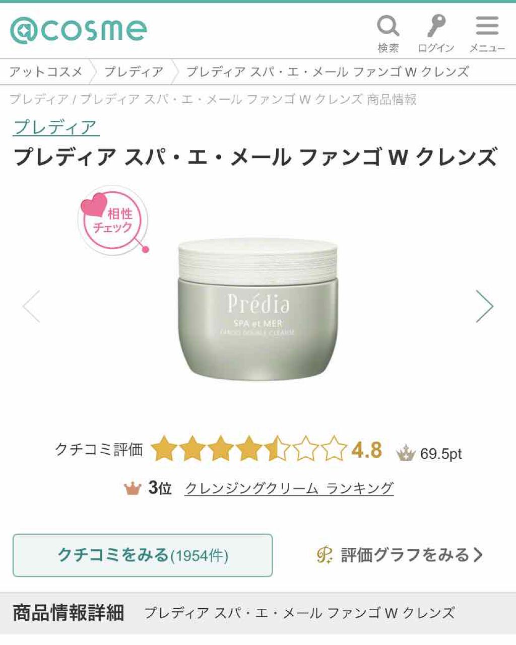商品詳細情報Prédia プレディア スパ・エ・メール ファンゴ W クレンズ