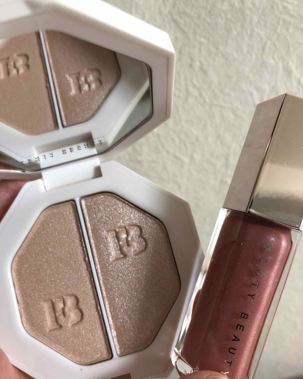 今日はFENTYBEAUTYBYRIHANNAのKILLAWATTを紹介します👏こちらは細かいパールとラメ感が強い2つのハイライトになってます✨白っぽいピンクパールのハイライトと、チークにもなりそうなぐらいピンクが発色するラメハイライトです💕...