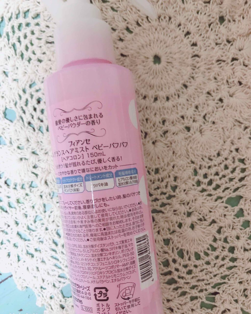 フィアンセフレグランスヘアミストピュアシャンプーの香りだいぶ前にLIPSショッピングで購入して、最近ようやく使い始める事が出来ました🤗✨めちゃくちゃ良い香りで、髪の毛も落ち着く感じがします💖子どもの寝癖直しにも使っていますが、寝癖直りました!...