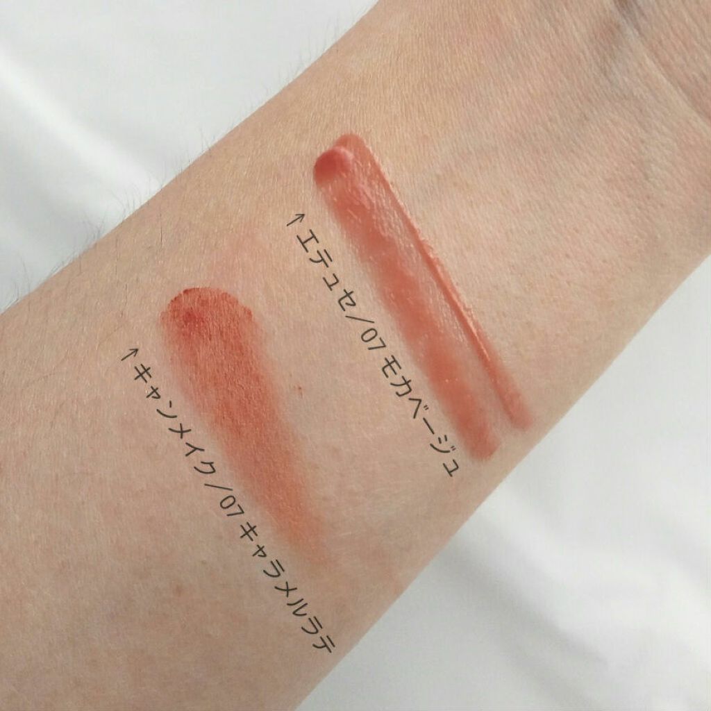 発色···ローラメルシエが 「ヌードベージュ」 だとしたら、ルナソルは 「ゴールド(?)っぽい」 かな。肌色に溶け込んで、発色は わからないけどね。 艶···薄く塗ると自然なツヤ感。 たっぷり塗ればゴージャスな感じに。