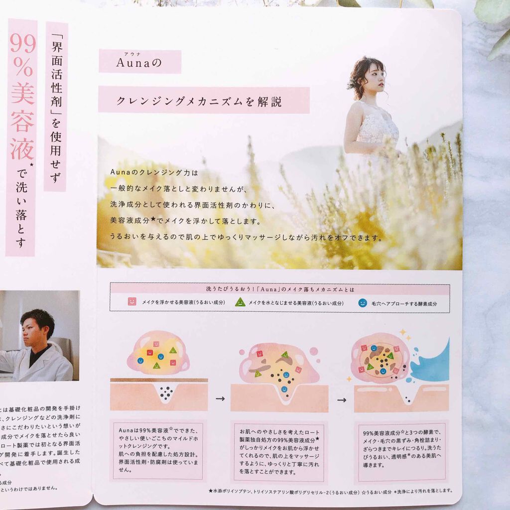 - 「界面活性剤を使わず、美容液成分(うるおい成分)※2がメイクを浮かせて落とす」、という日本初*の製剤開発をスタートし、メイク落ちと毛穴ケア※3、肌へのやさしさを考えた処方設計の両立を実現。敏感肌※4、乾燥肌など様々なお客様の肌質にも合うよう、防腐剤フリーをはじめとした9つの無添加※5にもこだわりました。 *全顔用メイク落とし用途のホットクレンジングにおいて、界面活性剤を配合していない製品。(Mintel 社製品データベース内2020年8月ロート製薬調べ) ※2:美容液成分(うるおい成分):水添ポリイソブテン、トリイソステアリン酸ポリグリセリル-2。 ※3:毛穴ケア:洗浄により汚れを落とします。 ※4:敏感肌:敏感肌パッチテスト済み。敏感肌の方にご協力いただき、肌への刺激性を確認しています。すべての方に刺激がおこらないというわけではありません。 ※5:9つの無添加:防腐剤(パラベン、フェノキシエタノール)、界面活性剤、香料、着色料、鉱物油、アルコール、紫外線吸収剤、シリコン、サルフェートを配合していないことを指します。