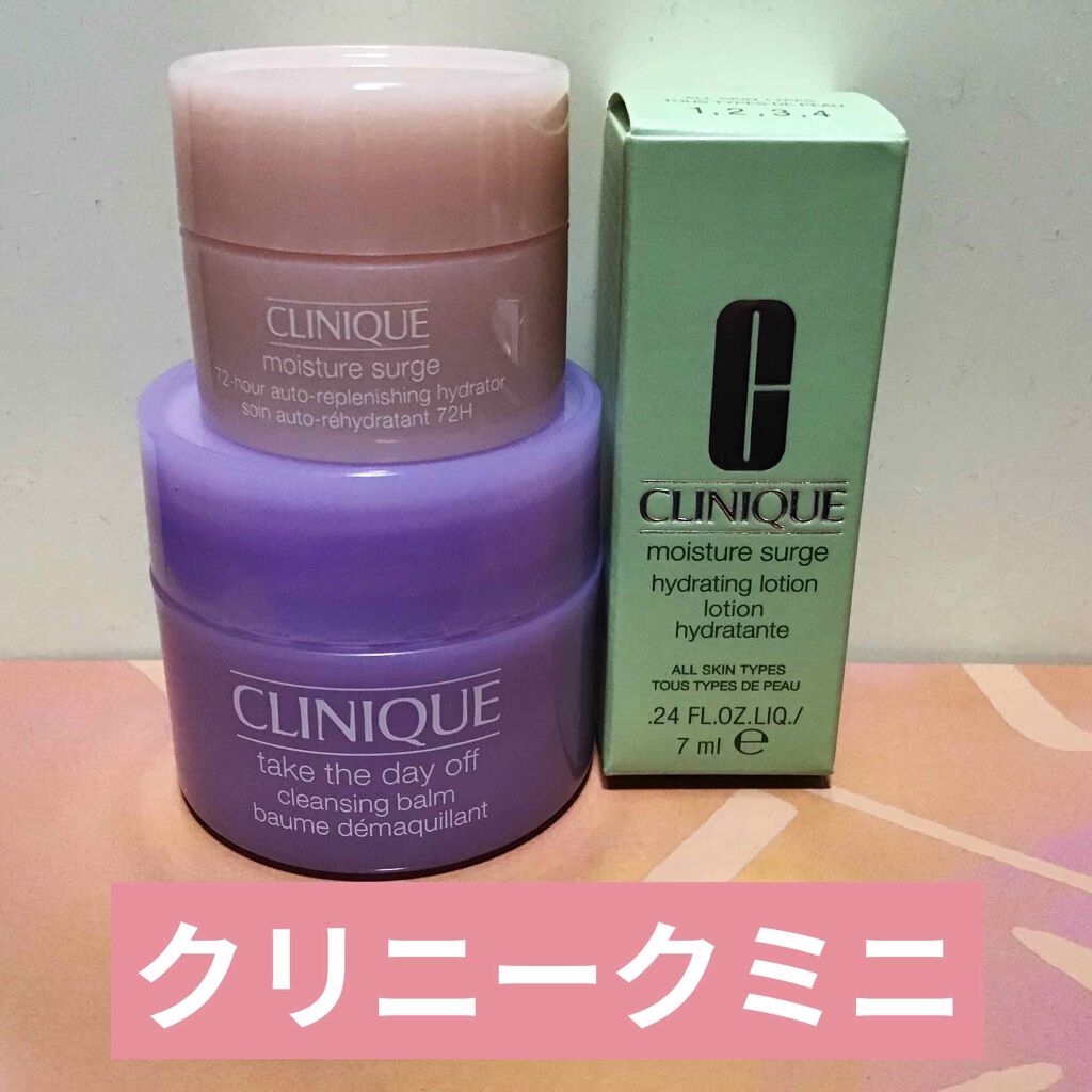 クリニークミニサイズはお試しにぴったり!テイクザデイオフクレンジングバームとCLINIQUEモイスチャーサージ72ハイドレーター乾燥肌にオススメです⭐️...