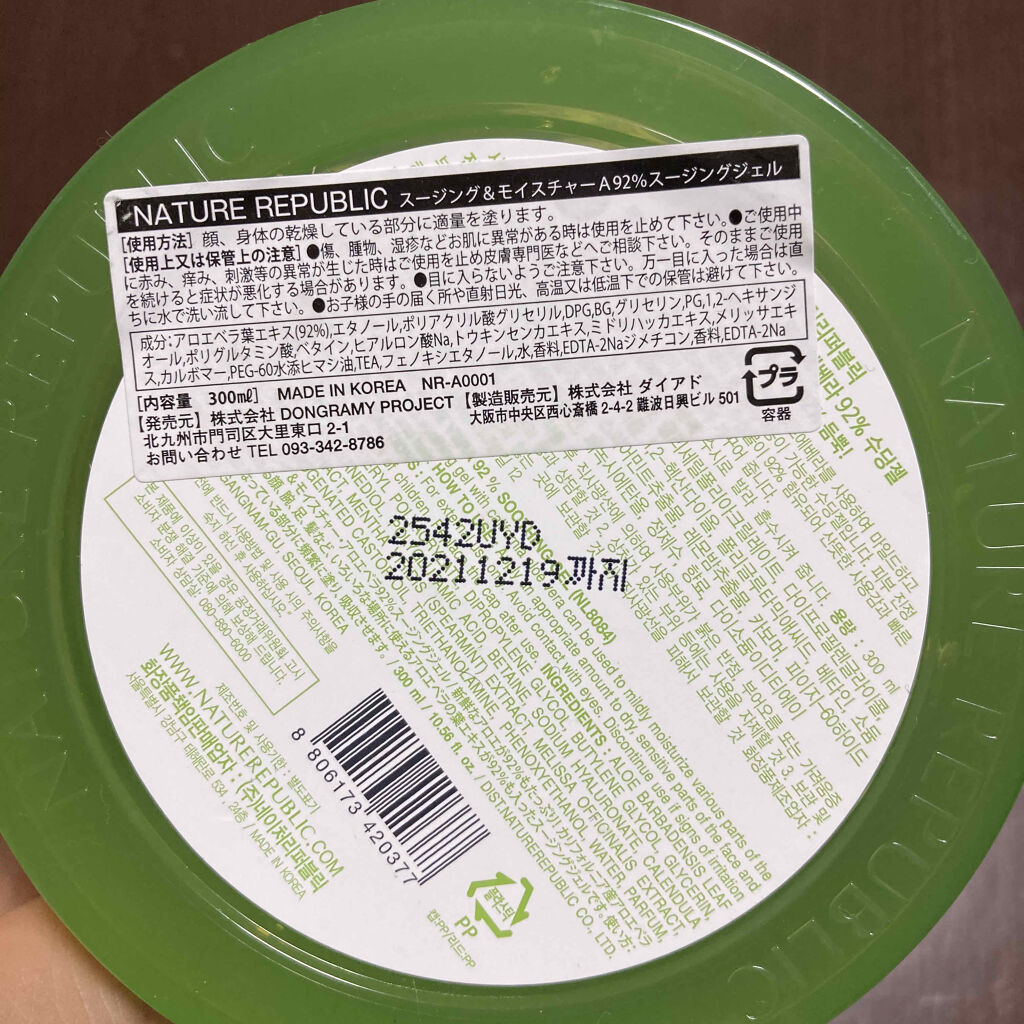 ネイチャーリパブリックスージングアンドモイスチャー アロエベラ92%スージングジェル楽天市場の、ネイチャーリパブリック公式で買ったよ。ボトルタイプで、増量とあったから😁限定とか、増量という言葉に弱い。アロエジェルは、塗るとさらっとした保湿感。...