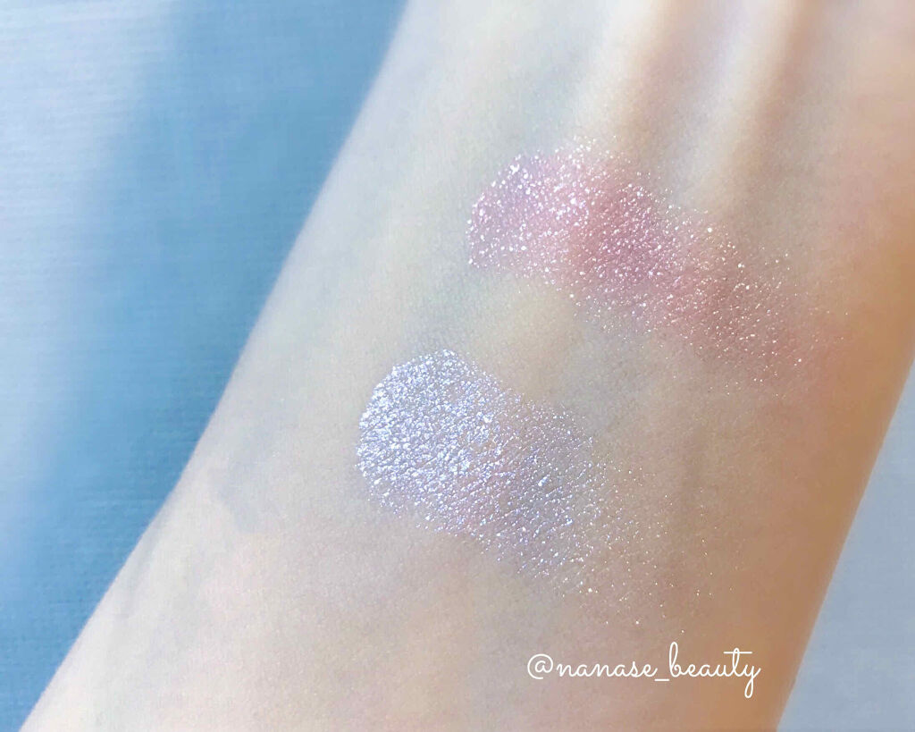 大粒の偏光グリッターラメをたっぷり配合していて美しい煌めき… ぷにっと柔らかい質感のテクスチャーは ピタッと密着してよれにくくラメ飛びもしにくい🙆♀️💕 BL761 水の砂💧:ブルーからピンクに輝くグレーベースのカラー GD862 月の砂🌕:ゴールドからグリーンに輝くブラウンベースのカラー