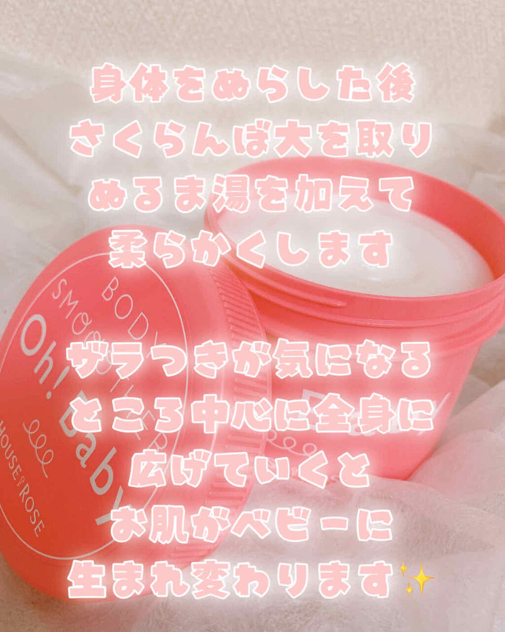 ✨大切な日にマシュマロボディで迎えたくない?✨【HOUSEOFROSEOh!BabyボディスムーザーN570g】メリット&デメリットをぶっちゃけちゃいます優しくクルクルマッサージをするだけで肌からキュッキュッと音がなりそうなくらいすべすべにな...