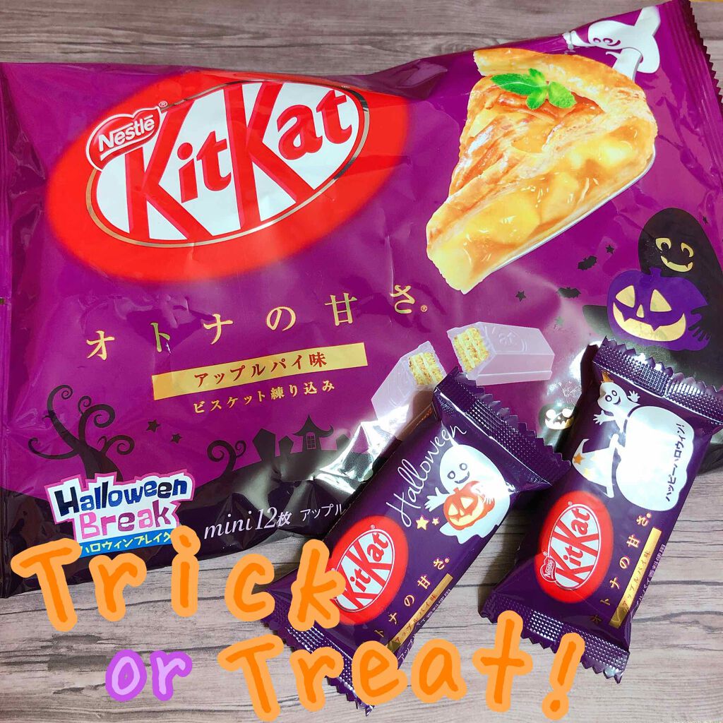菜の花ちゃん💗キタキタ~✨ハロウィン🎃ネイル🥰可愛い~🎃菜の花ちゃんはハロウィンネイルかなって期待してた😊アップルパイのキットカットだ~ありがたい参考にする🥰