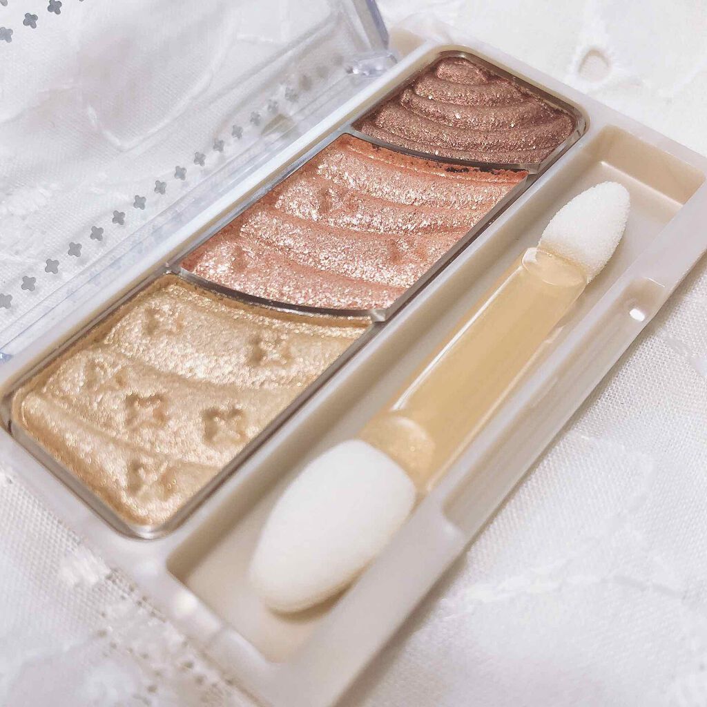 - 3色で簡単に明るく大きな目元に。 しっとり感触のアイシャドウ。 くすみを飛ばす明るさベース、ひとえ・奥二重の方でも幅広く塗れる肌なじみの良い中間色、 濃密高発色の締め色が目の輪郭を強調し大きな目元に。 微細パール配合でくすみを飛ばし、明るい目元へ。