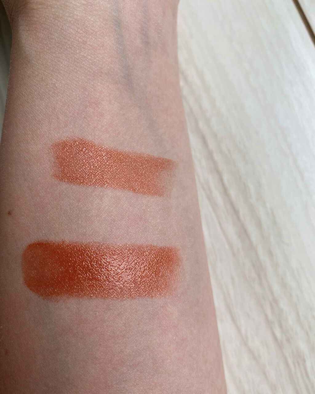 陽雫はもうキランキラン✨✨で可愛すぎました❤️ 多色ラメって美しすぎるよね° ✧ (*´ `*) ✧ ° スウォッチは3度塗りぐらいしてるので、薄づきも重ね塗りも楽しめる感じ💡 シルバーラメが目立つので華やかな印象です💕 銀朱に似てるかな?って思ってたけど、銀朱はピンクラメでブロンズっぽい光り方をするので全然別物でした。