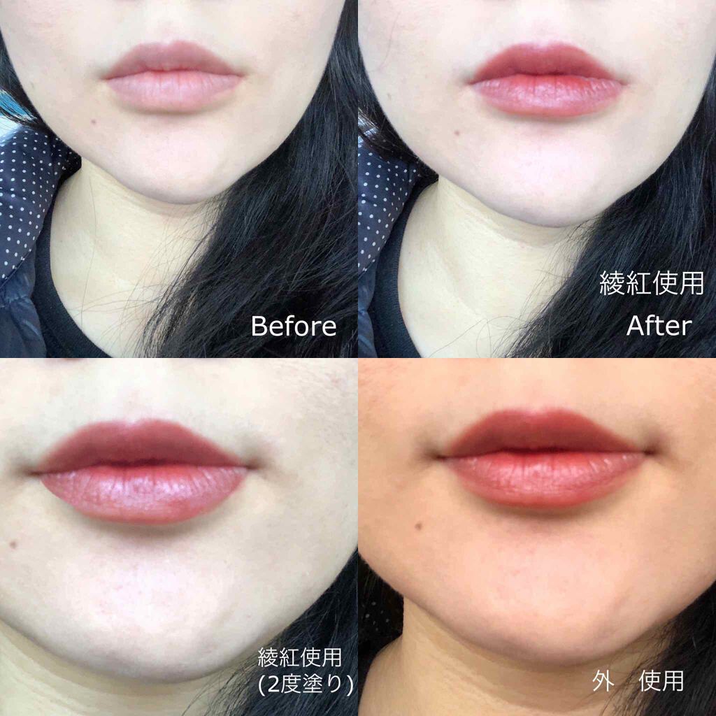 - 数量限定 唇の色を活かして発色。肌に馴染んで上品な「赤」に変化。 一般的な染料を使用した口紅は、分子が唇を覆い均一に発色するため唇の色を問わず同じ色になります。Coyori-綾紅-は処方特性によって顔料が分散し、元の唇の色を活かして発色。イエローベースにもブルーベースにもよりすぎず、誰にでも似合う血色感を演出します。また、少しだけ青みをプラスしているので、年齢による黄ぐすみをカバーします。