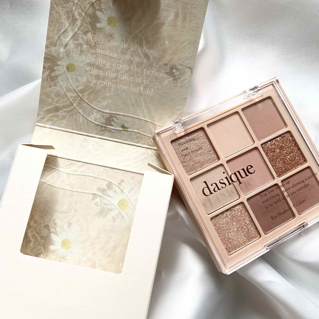 - 【舞台上のバレリーナの繊細な動きと抑制された美しさを再解釈した、dasiqueならではのバレエコアコレクション】 シマー、マット、パールなどバリエーション豊かなテクスチャーで、軽やかにまぶたにフィット。粉飛びしにくく、指先で簡単に美しい仕上がりが叶います。 柔らかいピンクベースから深みのあるシェードまで揃い、1つのパレットで普段使いのデイリーメイクから特別な日の華やかメイクまで幅広く楽しめます。 - 活用しやすいテクスチャーとカラーバリエーションで毎日新しいムードを完成してくれるデイジーク シャドウパレット。 デイリーメイクからポイントメイクまで演出が可能。 感覚的な9種類の色味でムードUP! 多彩でウェアラブルなテクスチャーで高い活用度!