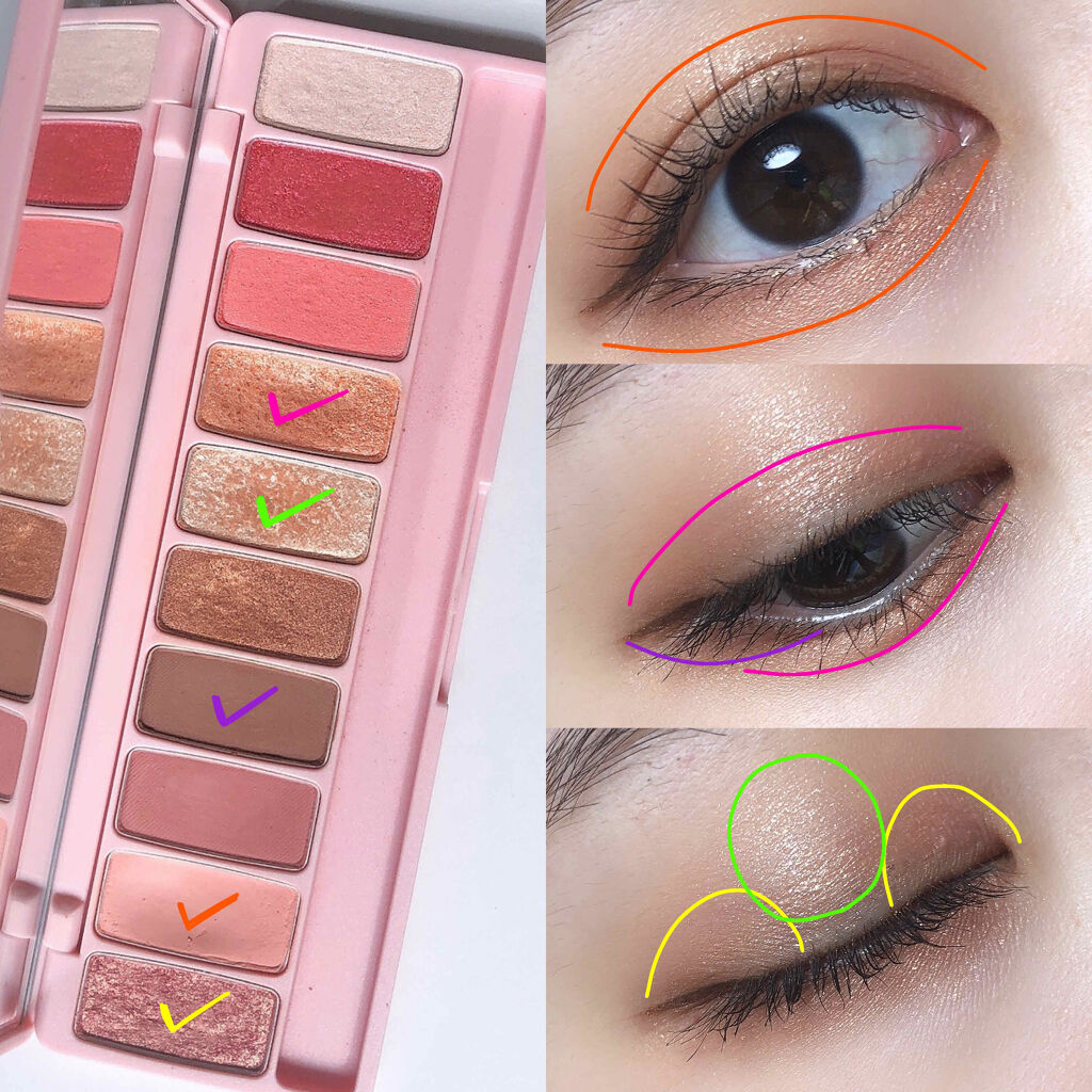 - 肌なじみの良い、鮮やかな発色で目元を華やかに彩る捨て色なしの10色アイシャドウパレット 異なる3種のテクスチャーを自由に組み合わせて、グラデーションも思いのままに。 NEW 2023.4 ・肌トーンにあう配色を詰め込んだトレンドカラー 肌トーンに合わせて、自分に似合うトレンドカラーが楽しめる♡ パーソナルカラー×トレンドカラーの掛け合わせパレットで、デイリーメイクもスペシャルメイクも気分にあわせてなりたい自分に! ・むにゅっとジェル質感ラメで高密着、煌めく目元 パレットの中でもポイントとなる大きめ粒子のラメは、ジェルのような新質感で落ちにくく肌にぴったりと密着します。キラキラとした目元をキープします。 ・使うカラーは大きめに!リアル捨て色なしパレット ベースやラメのよく使うカラーと締め色や濃い色等の減りが少ないカラーを異なるサイズで詰め込んだ、リアル捨て色なしパレット! <使用方法> 付属のデュアルシャドウブラシでベースカラーをまぶた全体に塗り広げます。細いブラシでグラデーションや目尻、アイライン、涙袋などのポイントカラーをのせて仕上げます。