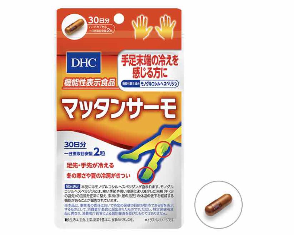 - 機能性関与成分[モノグルコシルヘスペリジン]を一日摂取目安量あたり375mg配合した【機能性表示食品】です。[モノグルコシルヘスペリジン]は、寒い季節や強い冷房により減少した末梢(手・足の指先)の血流を正常に整え、末梢(手・足の指先)の体温の低下を軽減することが報告されています。 足先・手先が冷える、冬の寒さや夏の冷房がきついという方におすすめです。