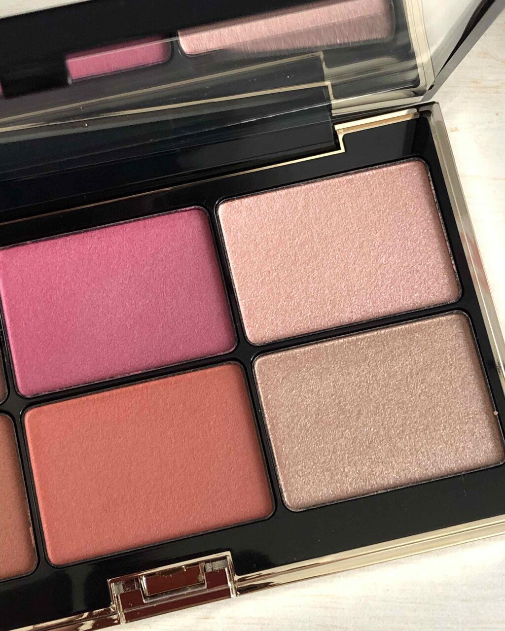 - [限定品] あらゆる肌色になじみ、メイクトーンを高めるチーク4色と、艶やニュアンスを与えるハイライト2色をセット。しっとり肌に吸いつくような質感で、頬をなめらかな色で染め上げます。 4種の植物性保湿オイルを配合。 (アーモンド油、カニナバラ果実油、ヘーゼルナッツ油、グレープ種子油)