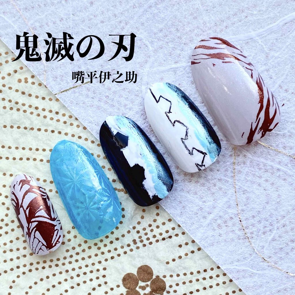 🔥🔥煉獄杏寿郎イメージネイル🔥🔥私の最推し鬼滅の刃煉獄杏寿郎さんあの、どこ向いてるかわからない目がかわいいです。喋り方がツボで好きになりました。(ミーハー)誕生日なのでイメージネイル作ってみました。🔥道具🔥・濃密22(黒)・濃密21(白)・濃...