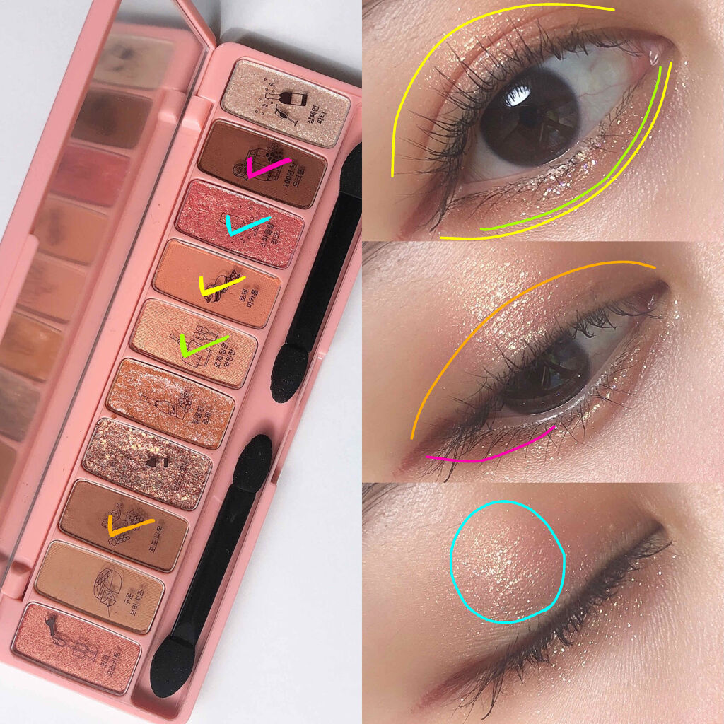 - 肌なじみの良い、鮮やかな発色で目元を華やかに彩る捨て色なしの10色アイシャドウパレット 異なる3種のテクスチャーを自由に組み合わせて、グラデーションも思いのままに。 NEW 2023.4 ・肌トーンにあう配色を詰め込んだトレンドカラー 肌トーンに合わせて、自分に似合うトレンドカラーが楽しめる♡ パーソナルカラー×トレンドカラーの掛け合わせパレットで、デイリーメイクもスペシャルメイクも気分にあわせてなりたい自分に! ・むにゅっとジェル質感ラメで高密着、煌めく目元 パレットの中でもポイントとなる大きめ粒子のラメは、ジェルのような新質感で落ちにくく肌にぴったりと密着します。キラキラとした目元をキープします。 ・使うカラーは大きめに!リアル捨て色なしパレット ベースやラメのよく使うカラーと締め色や濃い色等の減りが少ないカラーを異なるサイズで詰め込んだ、リアル捨て色なしパレット! <使用方法> 付属のデュアルシャドウブラシでベースカラーをまぶた全体に塗り広げます。細いブラシでグラデーションや目尻、アイライン、涙袋などのポイントカラーをのせて仕上げます。