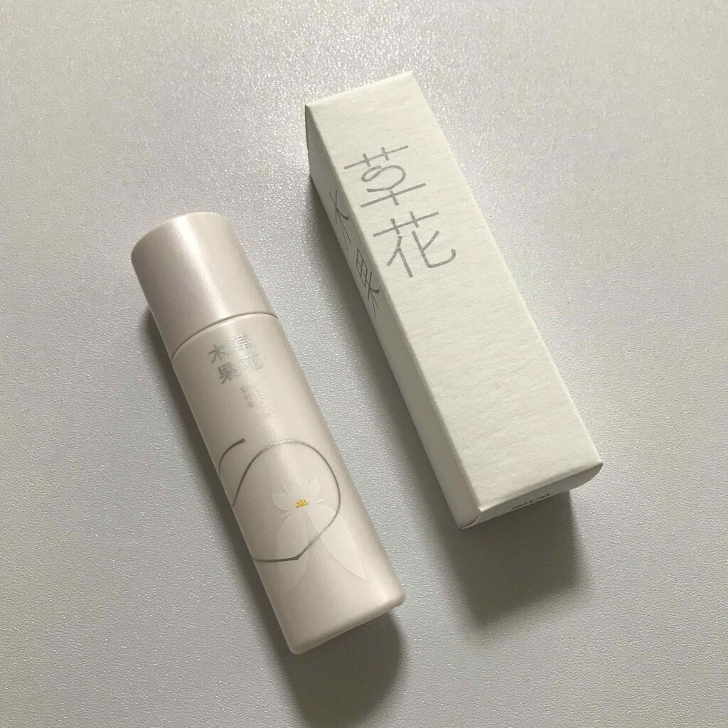草花木果の美容液♪😊乳白色のとろっとしたジェルでするするのびる感じでした💓べたつき少なく軽いつけ心地なので、夏でも使いやすいかと思います☘️鼻の毛穴が気になるので、毛穴ケアにも期待したい✨️柑橘系の爽やかな香りがすごく好みでした💕たくさん使い...