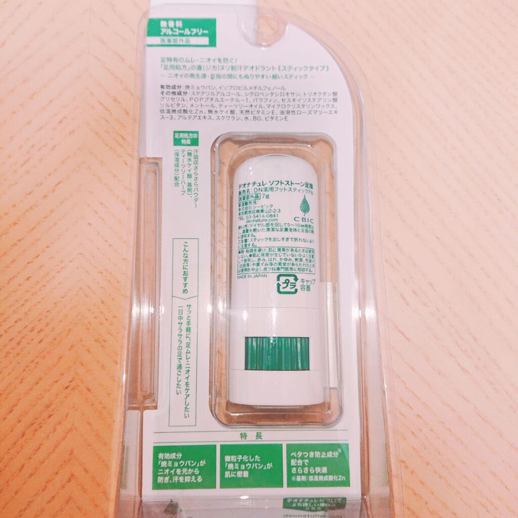 - \11年間ず~っと売上No.1*直ヌリ制汗デオドラントブランド/ 『防臭力のデオナチュレ』シリーズから、足特有のムレ・ニオイを防ぐ足用処方 足用制汗剤 直ヌリスティック・無香料 ◆◆靴、脱ぐの⁈とドキッとすること、ありませんか?◆◆ 足は1日コップ約1杯分の汗をかく!だから、デオナチュレの足用でケア ◆◆ユーザーから選ばれる理由◆◆ 1.天然アルム石に着目。有効成分「焼ミョウバン」を配合し、汗・ニオイを元から防ぐ! さらに、足汗吸収パウダー**やティーツリーハーブ・ローズマリーエキス***を配合した足用処方 2.足に“直ヌリ”で朝ぬって夜まで続いちゃう! 3.手を汚さず、ニオイの発生源・足指の間も、ベタつく足裏も、手軽にぬれるスティックで、ぬったあとすぐにサラサラ!白残りしにくい ==注意== ●顔・粘膜を避け、除脱毛直後や肌に異常があるときは使用しないでください。●肌に異常が生じていないかよく注意してご使用ください。また、お肌に合わないとき、使用中に赤み、はれ、かゆみ、刺激、色抜け(白班等)や黒ずみ等の異常があらわれたときは、使用を中止し、皮フ科専門医などにご相談ください。●使用後はキャップをしっかり閉め、直射日光や高温多湿を避けて保管してください。●乳幼児の手の届かないところに置いてください。●スティックを出し過ぎて折れないようご注意ください。●床、靴、衣類などにつかないようご注意ください。 販売名:DN薬用フットスティックFb *インテージSRI+直ヌリ制汗剤市場(形状:ロールオン・スティック・クリーム・ジェル・パウダー) 2013年5月~2024年4月 デオナチュレシリーズ 累計販売金額 **基剤:無水ケイ酸 ***保湿成分