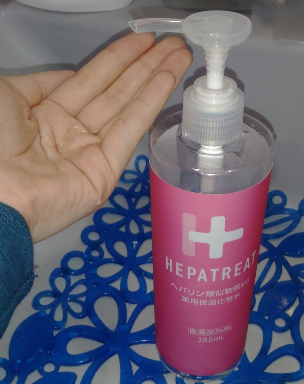 - ヘパトリートは保水有効成分のヘパリン類似物質と肌あれ有効成分のグリチルリチン酸ジカリウムを配合し、8つのフリーを実現。低刺激処方ながら高機能な化粧水です。さらに、薬用化粧水では珍しい大容量ポンプ(385mL)でとても使いやすく、赤ちゃんから大人まで、顔や全身の肌あれ・乾燥に使えます。 ■Wの有効成分 1.ヘパリン類似物質 顔・全身の乾燥を防ぐ 肌の乾燥による肌あれ/あれ性/皮膚を健やかに保つ/肌を整える/あせも/ひび/あかぎれ 2.グリチルリチン酸ジカリウム ニキビを防ぐ/肌をひきしめる/日やけ、雪やけ後のほてりを防ぐ/しもやけ/かみそりまけを防ぐ ■肌にやさしい低刺激処方<8つのフリー> 無香料/無着色/無鉱物油/無動物油/パラベンフリー/アルコールフリー/石油系界面活性剤フリー/シリコンフリー ※パッチテスト済み ※スティンギングテスト済み