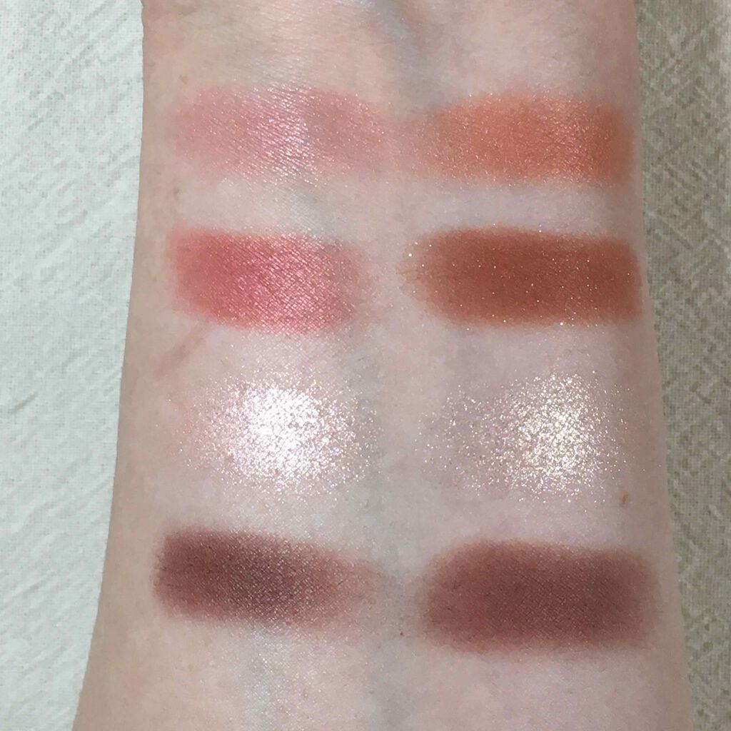 粉質がしっとりで高密着 ✔️発色がいい ✔️ラメが繊細でキラッキラ 目元が一気に華やかになる!秋にぴったりカラー 本当に4色全部好きすぎてブルベって分かってからも秋冬になるといつも使ってる。 右下のバーガンディの色味がゴールドのラメと合う!とにかく可愛い!!💖