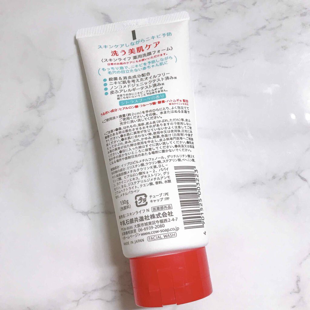 スキンライフ薬用洗顔フォーム¥495ランキング上位だし近所のスーパーで見かけたので買ってみました⟡有効成分:イソプロピルメチルフェノール、グリチルリチン酸2K配合の薬用洗顔フォーム牛乳石鹸でお馴染みスキンライフといえばのシトラスブーケのいい香...