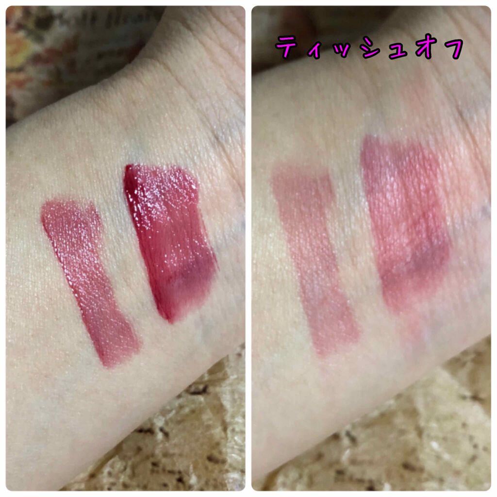 使ってみると"えっ😲 保湿力すご!!" "ツヤ感キレイ✨"つてなりました。 ティッシュオフするとツヤ感は消えますが 色もち◎保湿力◎ みんな良いっていうのわかる!! 他のカラーも買わないと…