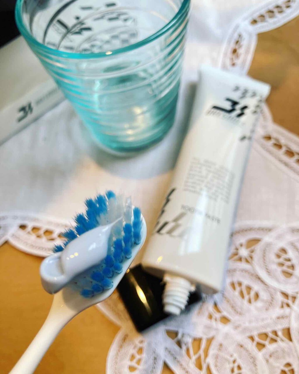 4つの有効成分配合の歯磨きペースト🪥 ゼオライト・フツ化ナトリウム・グリチルリチン酸ジカリウム・塩化セチルピリジニウム配合🧡 虫歯の発生及び進行の予防 ☑歯周炎(歯槽膿漏)の予防 ☑歯肉(齦)炎の予防 ☑歯石の沈着を防ぐ こちらブルーのペーストでミントの味🌿 強すぎずマイルドな感じなので使いやすい◎