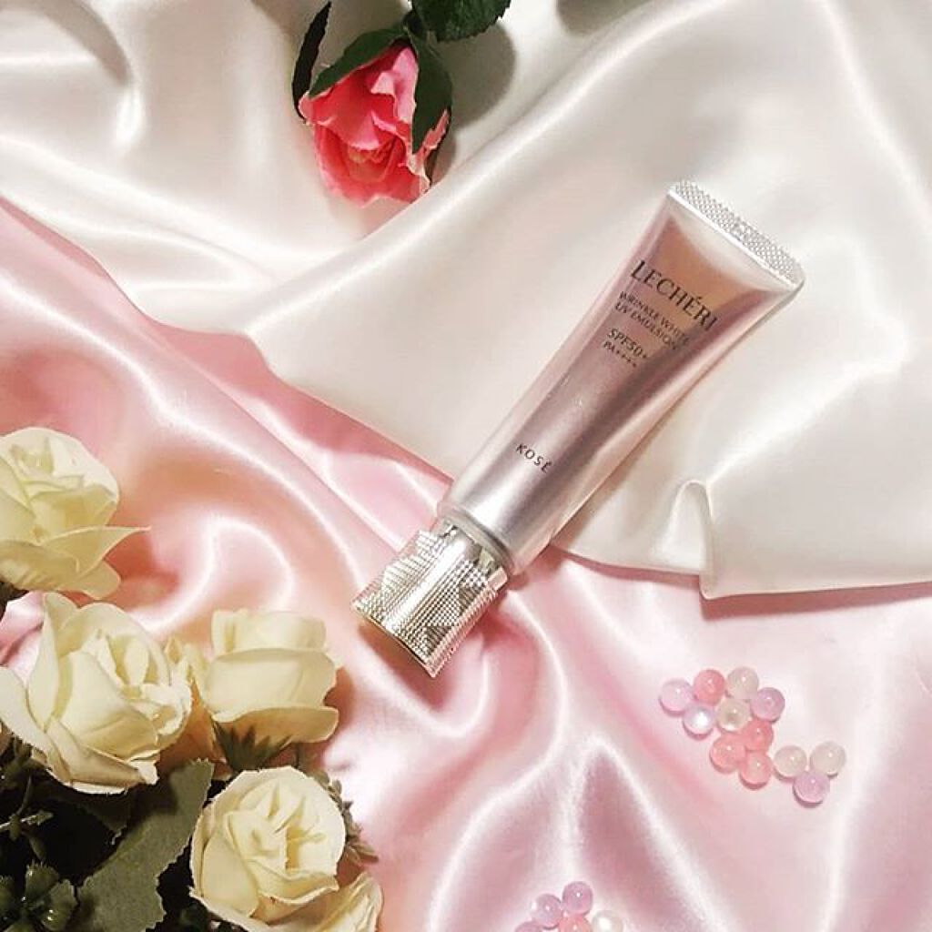 株式会社コーセーさんのルシェリリンクルホワイトUVエマルジョンシワ改善・美白・紫外線プロテクト・化粧下地・朝乳液5つの効能を叶え1日中うるおい、ハリツヤあたえる日中用UV乳液チューブタイプで、幾何学っぽい押柄のキャップも高級感があってステキで...