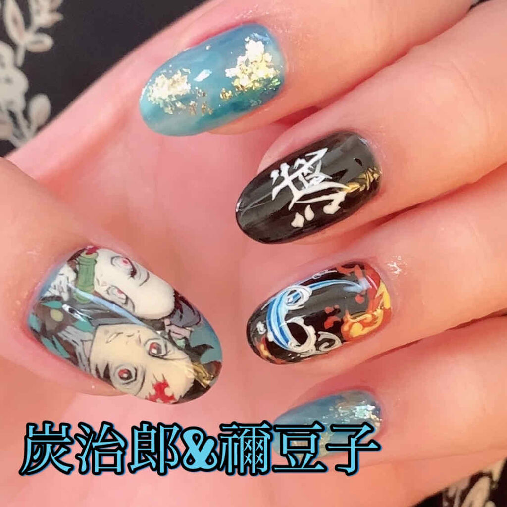 新しいネイルも凄いです👏❣️両手に鬼滅はテンション上がりますね❗️✨🤩(❁´ ︶ `❁)*✲゚*イイナー 真似しようとしても真似出来ないくらい上手なので、 目の保養に♥️ネイリストさんにみい様が居たら通うと思います😍