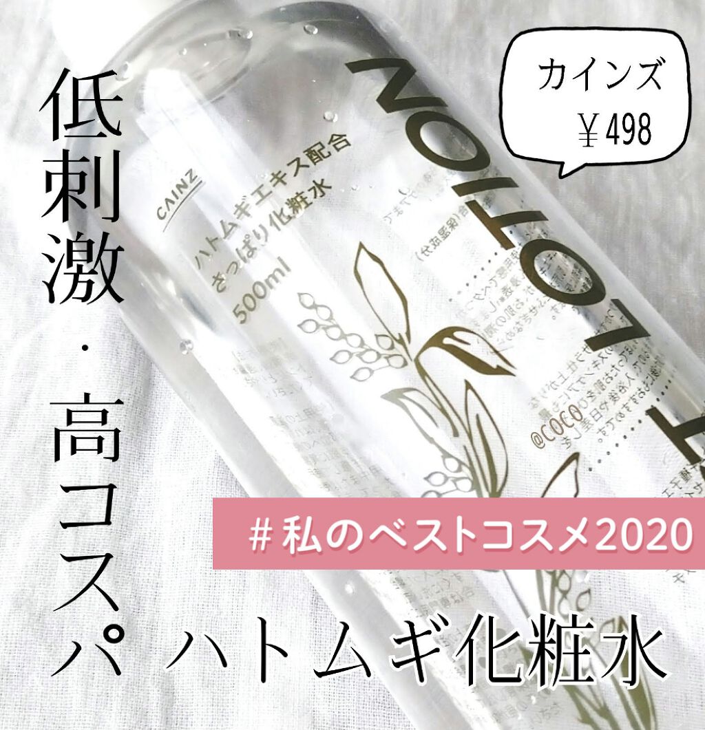 初めて投稿します。ふらっと立ち寄ったカインズで見つけた『ハトムギエキス配合さっぱり化粧水』容量は500mlで、私は100均のスプレーボトルに詰め替えて使っています。本当にさっぱりな使い心地でベタつきが一切ないので、お風呂上がりに全身にスプレー...