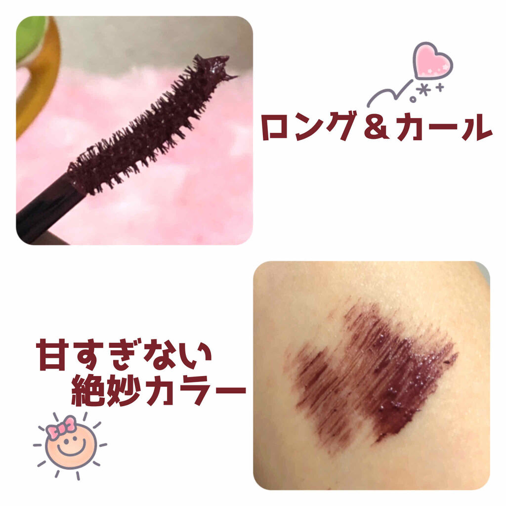塗る時にダマになりにくいです! お湯で簡単オフできます😊 カールキープは普通です💦 マスクで下がってしまいます😷💦 お湯でオフタイプのマスカラは下がりにくいのかな?🤔 下まつげだけや目尻だけに塗ってポイントカラーとして使ったりしてます! カラーはめちゃめちゃ好きです💖 実際つけてみるとそこまで紫!っていう感じではないかな! ブラックに少し赤みがあるかなーぐらいです笑 周りと差をつけるならこのカラーおすすめです😍