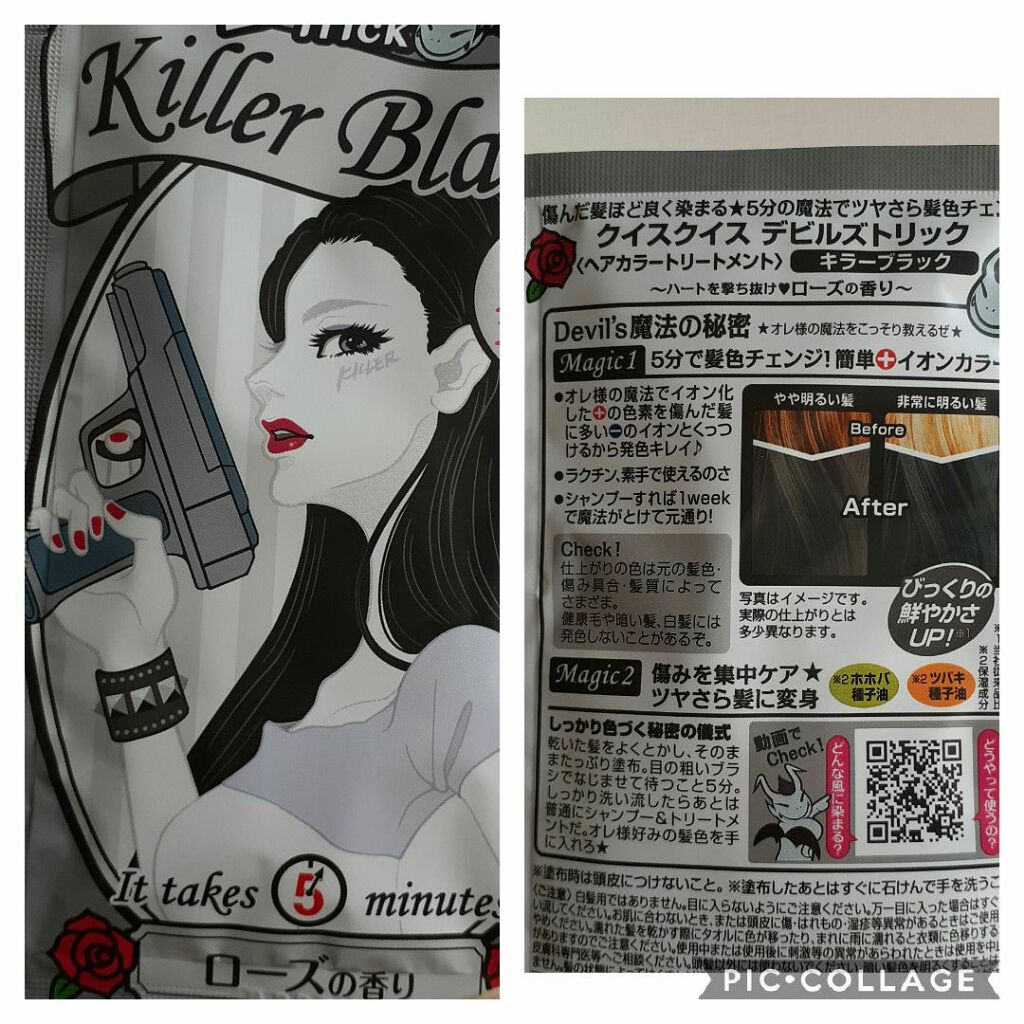 〖クイスクイス デビルズトリック キラーブラック〗元々派手髪が大好きだからデビルズトリックの存在は知ってたけど、使うのは今回が初めて🫣💓そんな初心者でもとっても綺麗にカラーチェンジできました🤗✨デビルズトリックはたった5分で髪色をチェンジで...