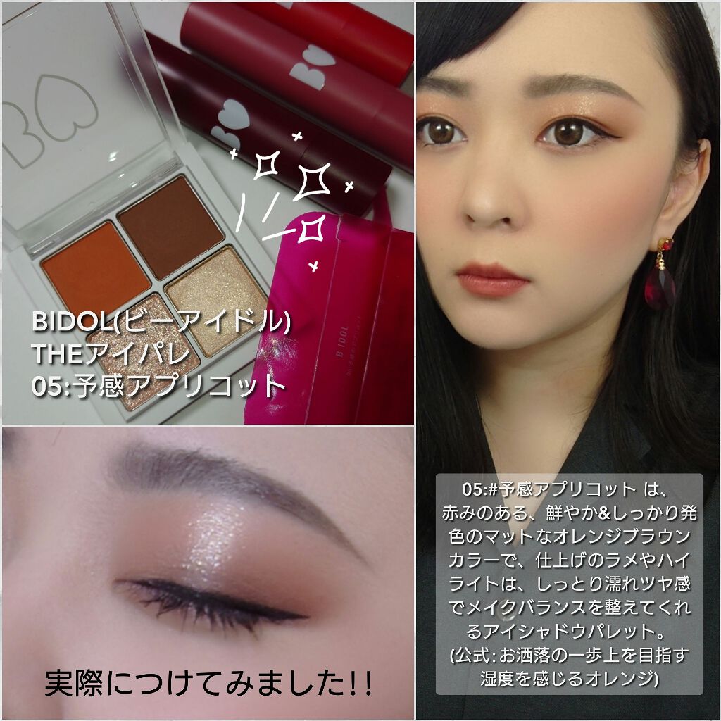 - 魔法の4色で印象的な目元に。 きらめきシャドウ×ハイライター あらゆるアイシャドウパレットを試してきた吉田朱里がたどり着いたのは“カラー3色+ハイライト”の4色パレット。 質感の異なるきらめきパウダーと、こだわりの配色で視線をひきつける印象的な目元へ。 立体感をつくるツヤ増しハイライター入り。 細部まで計算されたベストパレットで、一気にアイドル級の目力を演出します。 ※チップ・鏡はついておりません。 ※2023/3/31 リニューアル