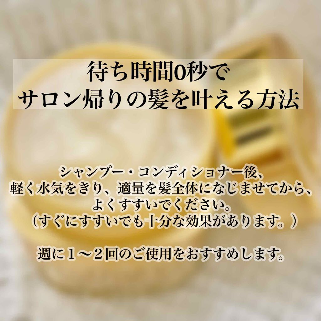 | ヘアケア・スタイリングランキング第39位 | ねっとりした濃厚なテクスチャ ダメージ気にしてる人にオススメ しっとり艶感ある髪になる | 詳細を見る | |