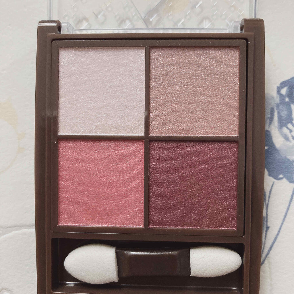 4色でグラデも単色でも可愛いニュアンスカラーのパレット。色を重ねても濁りにくいんだって! ラメが結構惜しみなく入っているので目元がキラキラになる! 色の残り方や発色の仕方はやはりプチプラ感あるかなって感じだけどラメがしっかり夕方までキラキラだったところはとても好感度高い💕