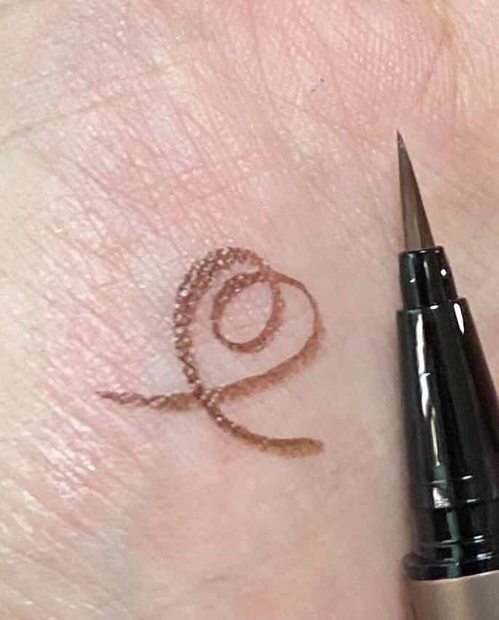 高発色がかなりいい!インクの密度も高い。 ブラウンすきずブラックすぎない程よい垢抜け感のあるカラーも素敵です💓 滲みにくく汗や摩擦に強いので朝から晩まで直しなしでも続く高発色。 まつげや瞼に優しいケア成分も配合してるみたいなので、目元に優しいアイテムです。