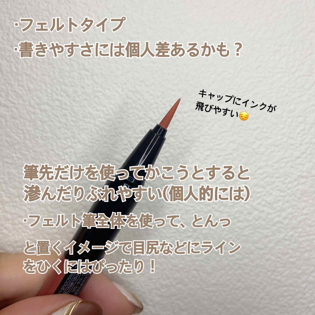 - ブラウンシャドウを引き立てる カラーライナー。スモーキーやヌーディーなど、ブラウンの魅力を引き出すカラー展開。 落ちにくくにじみにくいフィルムタイプ。液含みが良くしなやかなフェルトチップ筆採用。