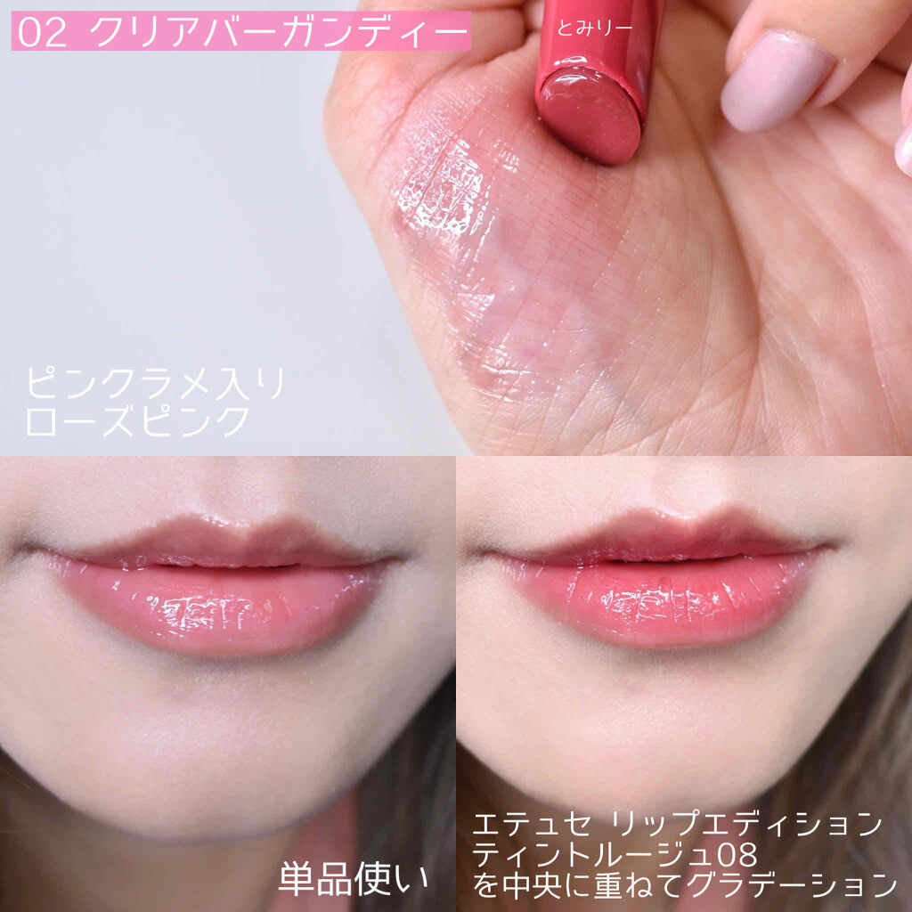 | リップティントランキング第3位 | 重ねて塗っても、ちゅるんと透け感が残って明るめカラーがとっても映える…💕色残りも◎ | 詳細を見る | ||