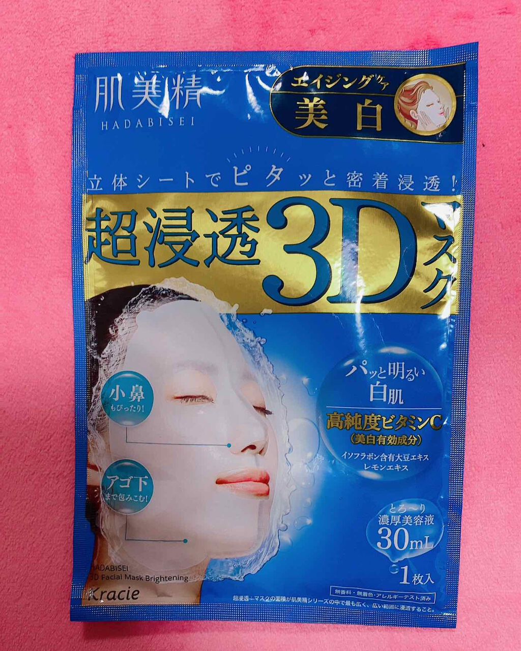 顔の凹凸にピッタリフィット!!立体形状マスク✨✨肌美精 超浸透3Dマスクエイジングケアとろみのある濃厚美容液がたっぷり30ml浸透した保湿効果の高いシートマスクです!かなりしっとりもちもちのお肌になれました♪翌朝まで潤いが続くのを実感🥹🥹あご...