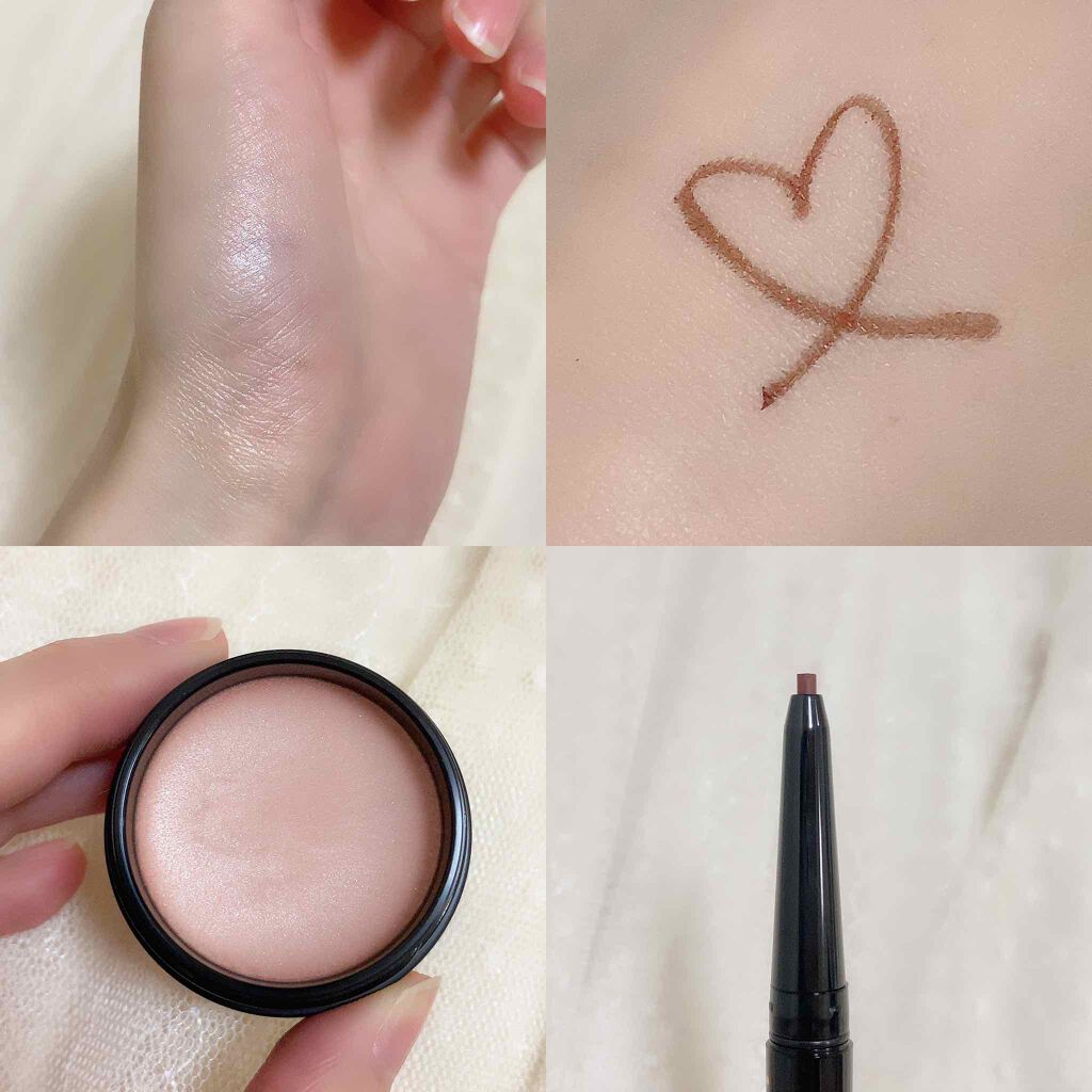 全体的な仕上がりは大人っぽくシックな雰囲気。 ちょっと儚げでスモーキーな感じもあるかな。 おとなしめと見せかけて右上のカラーに青ラメが入っていてさりげなく主張してくるのがすごく可愛い。 個人的には左上のハイライトとしても使えるベースカラーのほんのりピンクみを帯びているところが好き。 いかにもなハイライトじゃなくてほんとに肌に馴染むからナチュラルに使えるしアイメイクのベースに仕込んでおくと目元に明るさが出るし持ちも良くなるしメイクを底上げしてくれる感じがする◎ プチプラとは思えないしっとり質感と密着力の高さにも感動。 グレージュピンクがとても良かったのでチェリーオレンジも気になる、、、🍒🍊