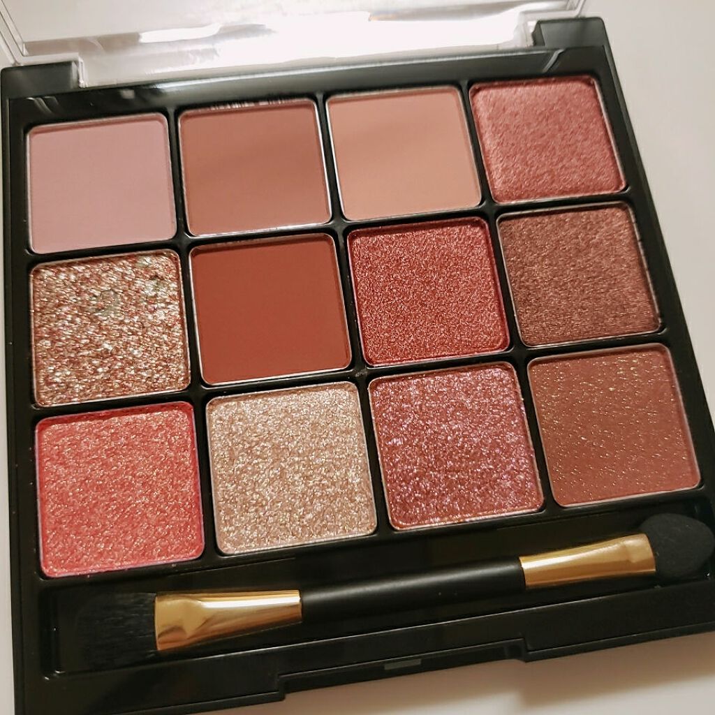 久しぶりに使用した気がしますっ。しっかり発色のこのパレット♫ この発色が好きです〜!! 真っ赤というより、赤みブラウンで使いやすいカラーです!! ラメも多めのパレットで、どのラメもキレイ✨