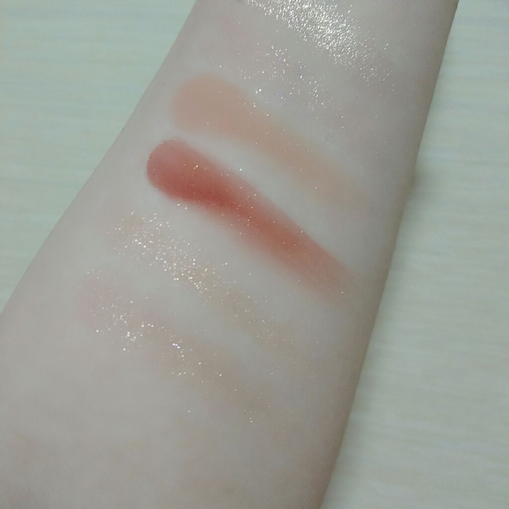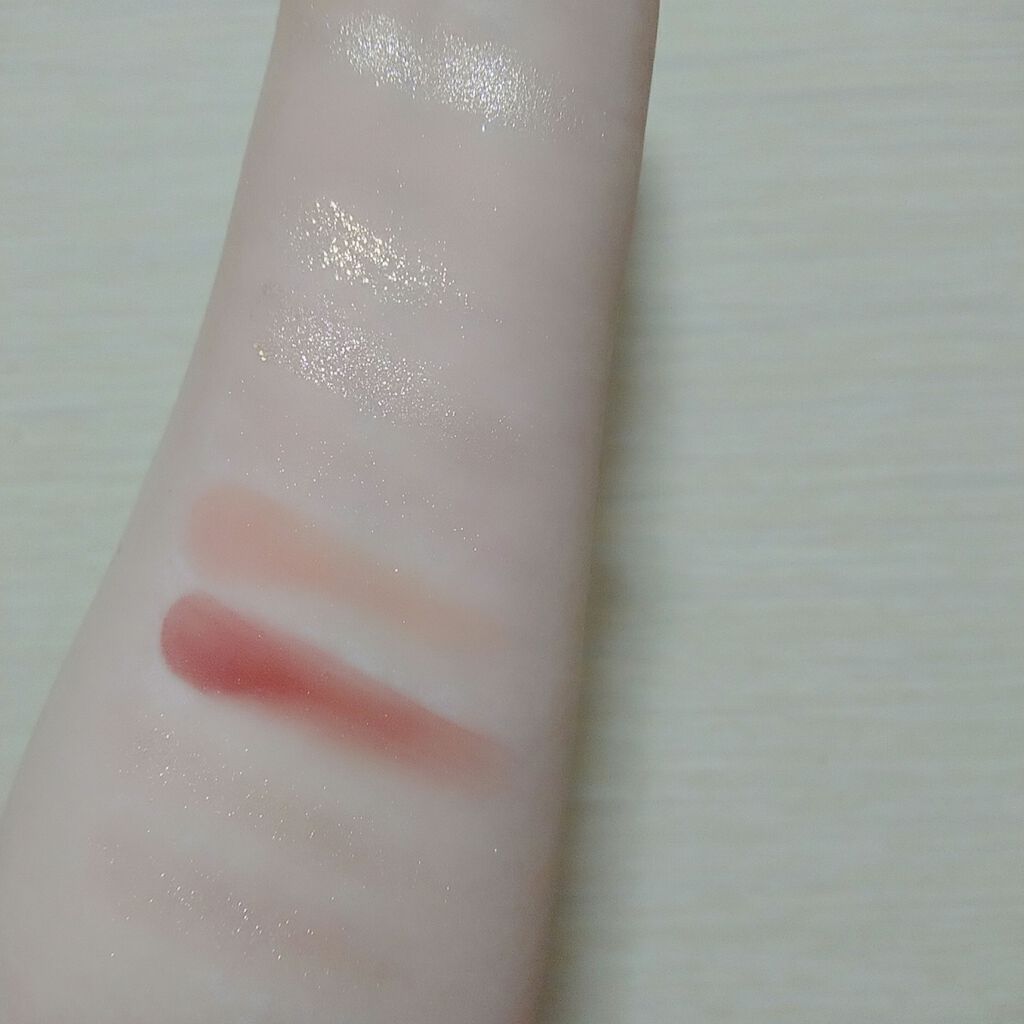 #えりぃのスウォッチです。#ロムアンド#romand#ジュシーラスティングティント22ポメロスキンピンクベージュカラーです。ベージュの中にピンク味があるので、血色感が感じられます。ベースリップとしても!23ヌカダミアポメロスキンより赤みがあり...