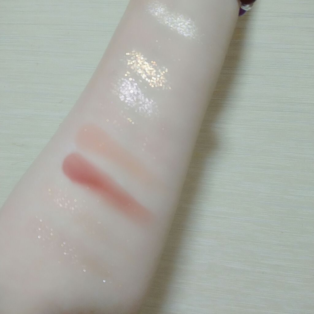 #えりぃのスウォッチです!#ケイト#KATE#3DプロデュースシャドウPU-1#ムーディーエクステンション1540円ピンク味の強いパープル。ラメは大粒なので目元以外には使えなさそう。粉質やラメ感が良くて、さすがケイト!肌なじみが良いのに、目元...