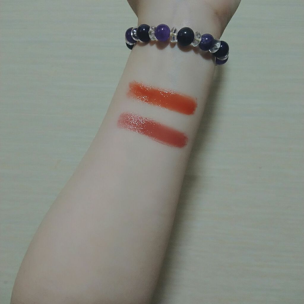 #えりぃのスウォッチです。#ロムアンド#romand#ジュシーラスティングティント22ポメロスキンピンクベージュカラーです。ベージュの中にピンク味があるので、血色感が感じられます。ベースリップとしても!23ヌカダミアポメロスキンより赤みがあり...