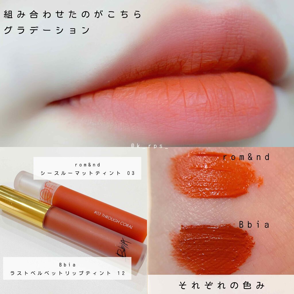 ロムアンドの赤系リップ!①rom&ndジューシーラスティングティント20ダークココナッツ②rom&ndジューシーラスティングティント17プラムコーク③rom&ndゼロベルベットティント21ヴィランベスト④rom&ndゼロマットリップスティック...