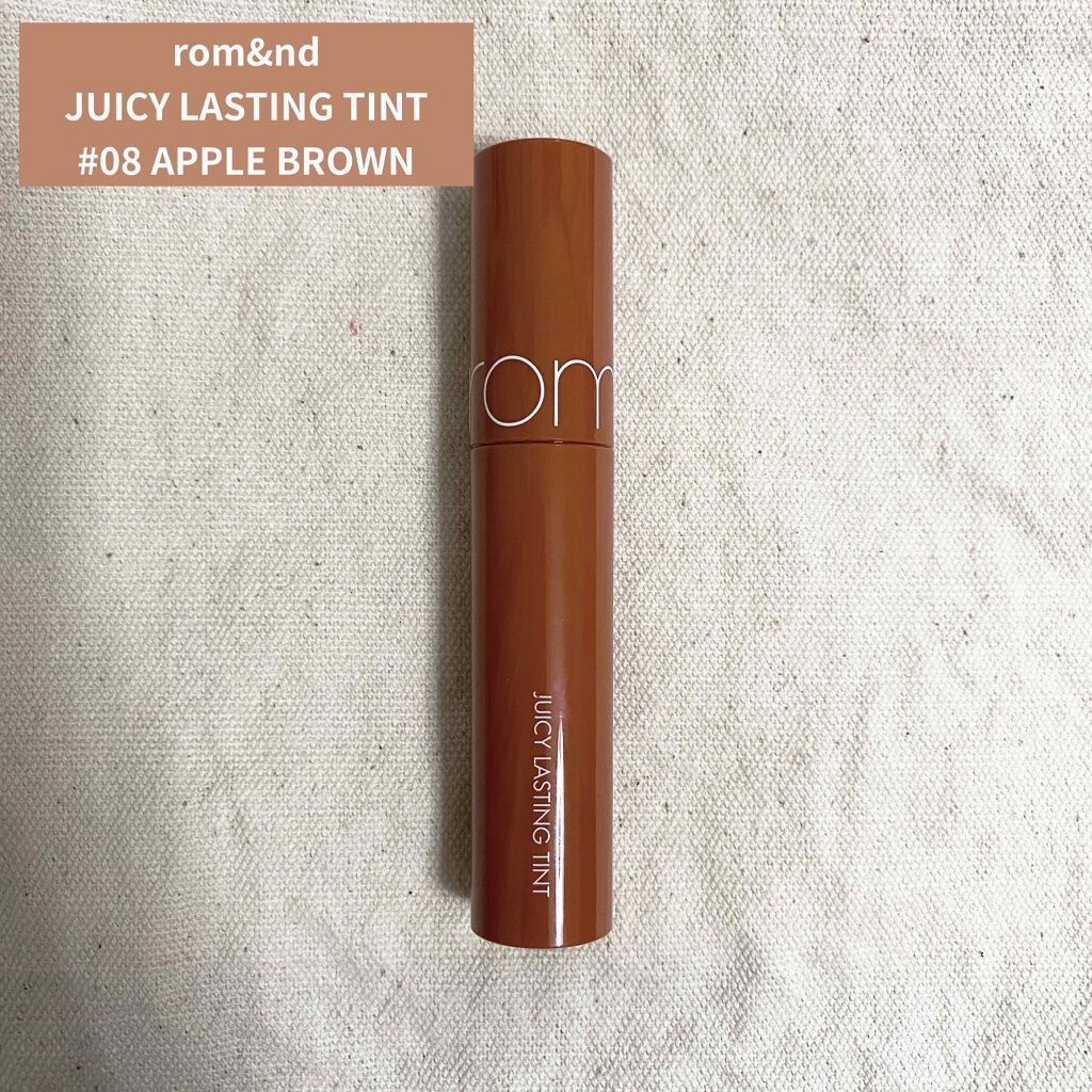 【うるちゅる果汁リップ💎】➸rom&ndジューシーラスティングティント塗った瞬間からツヤっと潤った仕上がりで唇にスっと馴染んで密着してくれます🥀ティントは乾燥しやすい印象がありましたが、ロムアンドは乾燥のストレスなく、唇が荒れることなく使用で...